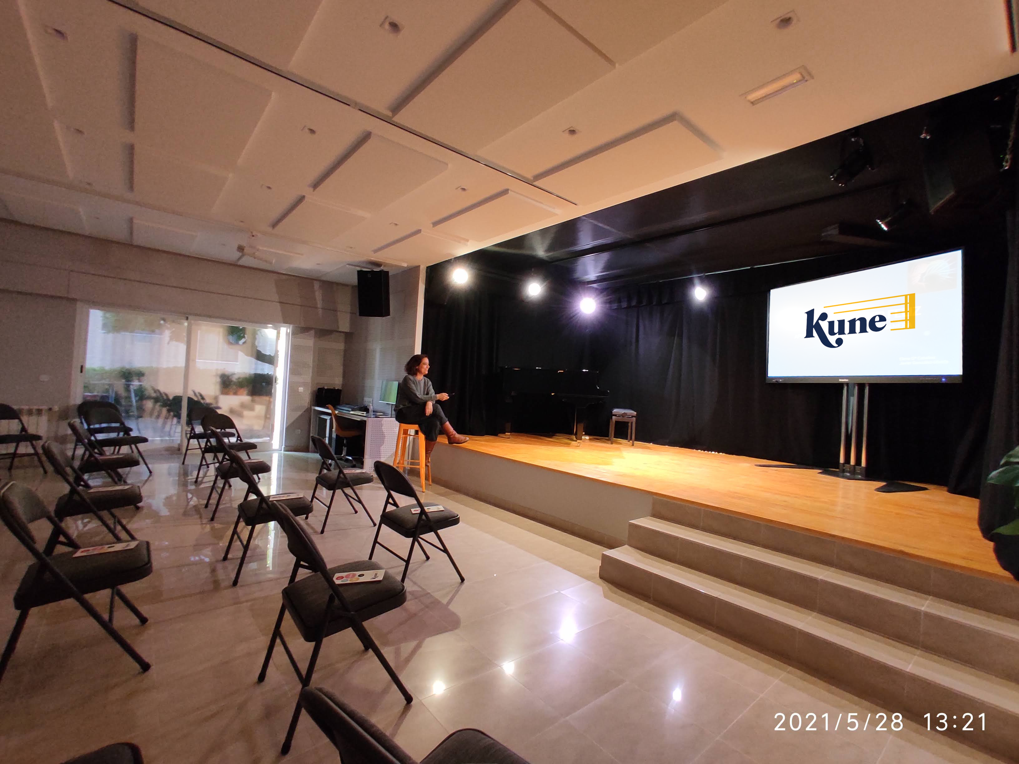 Kune es un espacio físico y virtual Contamos con salas dotadas de los últimos medios audiovisuales para actividades presenciales o a distancia. Ideal para eventos empresariales , presentaciones de producto, grabaciones, presentación de discos, show cooking, galería, teatro y ..¡mucho más! Es accesible para personas con movilidad reducida, cuenta con rampas, espacios y aseos adaptados y bucle magnético para personas con dificultad de audición El edificio consta de varias plantas En la Planta Baja encontramos la Sala Ágora, que es un espacio de usos múltiples que cuenta con un escenario Se puede acceder a un jardín y una terraza si el evento lo requiere. Con tratamiento acústico, escenario, pantalla, equipo de sonido profesional e iluminación, hacen que este espacio sea ideal para eventos de empresa, artísticos y culturales. En Planta Primera tenemos un plató virtual, salas de trabajo, formación, producción, reuniones y networking. En Planta sótano cabina de grabación y zona para eventos y exposiciones . En Planta ático sala de usos múltiples y formación con terraza Se alquila por salas, zonas, por horas o días completos Pregúntanos para más información. Abiertos a escuchar las propuestas de colaboradores y clientes, haciéndolas realidad juntos. Los precios son orientativos, dependen de la sala o espacios de su interés o si es espacio completo; así como del tipo de servicio, la duración y medios audiovisuales necesarios. Trabajamos por proyectos personalizados según las necesidades de clientes y presupuestos. Se facilitan según el evento. Te ofrecemos nuestra experiencia y espacios en tus proyectos, reuniones de empresa, conferencias, formaciones, eventos culturales, presentaciones, ferias virtuales y creación musical.