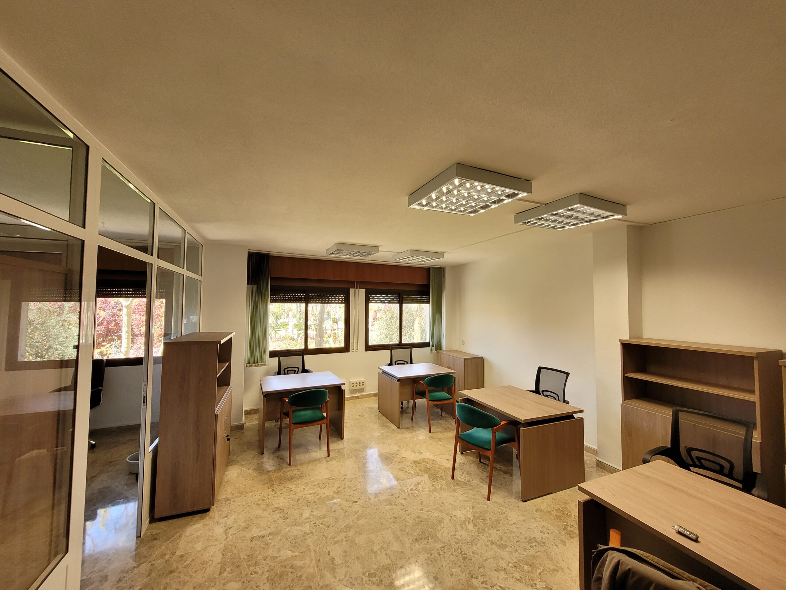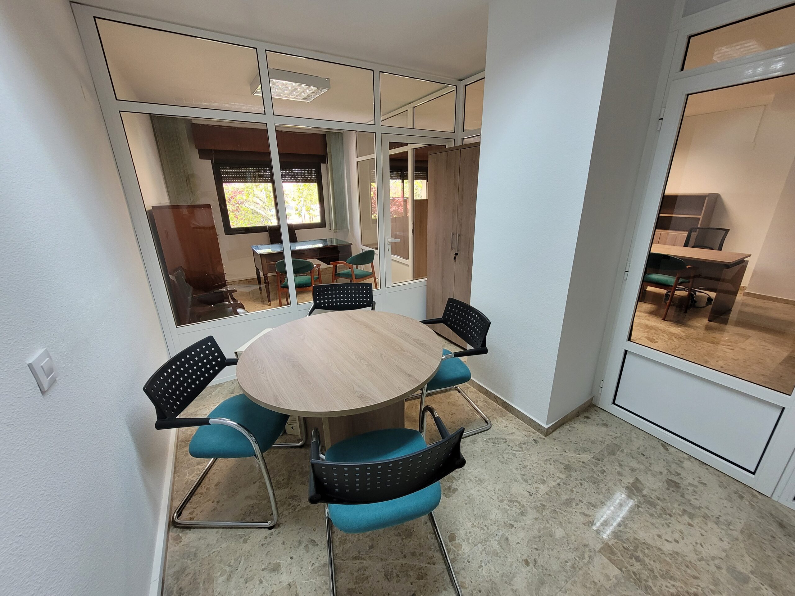 Se alquilan 4 Mesas de trabajo en oficina (190 € precio por mesa), POSIBILIDAD DE ALQUILAR LA SALA DE REUNIONES POR HORAS O DÍAS CONCRETOS (Precio a negociar), ideal para abogados, procuradores, economistas, administradores de empresa y de fincas, asesores fiscales, etc. Mobiliario totalmente nuevo. El precio incluye: mesa, silla de trabajo, silla confidente, espacio de almacenamiento en armario con llave persona, internet, luz, agua, teléfono fijo, uso de la sala de reuniones, cafetera, nevera, trituradora de papel y servicio de impresora. NO INCLUYE IMPUESTOS